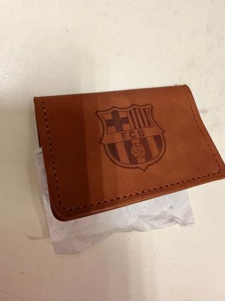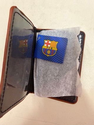 Cartera de cuero con el escudo del FC Barcelona grabado. - Diseño clásico y elegante. - Material de cuero de alta calidad.