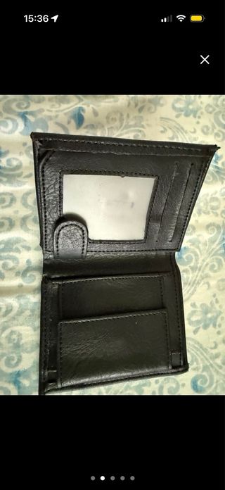 Cartera de hombre con un diseño clásico y elegante. - Material: Cuero sintético. - Compartimentos interiores para tarjetas y billetes.