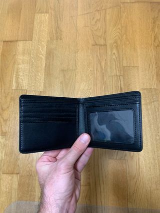 Me gustaría vender esta cartera de hombre. Se encuentra en buen estado y es de color negro. - Cartera de hombre de cuero. - Diseño clásico. - Con compartimentos para tarjetas y billetes. - Cierre con botón.