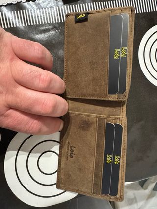 Cartera de hombre de cuero de la marca Powr. Nunca ha sido usada.