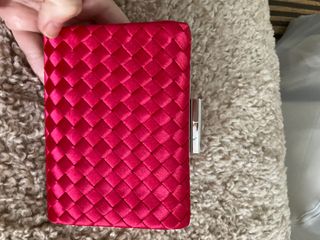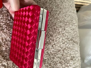 Bolso de color fucsia de fiesta, de puede llegar como cartera de mano o con asa. Usado en una ocasión, prácticamente nuevo