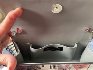 Bolsillo con cremallera interior. Tones plateados y dorados.Solo usada una vez para una fiesta ES de mano , pero lleva enganches para poner cadena