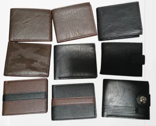Lote de 9 carteras de hombre totalmente nuevas , fuera de stock. El interior son todas iguales, con monedero pequeño, tarjetero y billetero. Precio lote 31 € ( 3,50€/ unidad). Precio por unidad 5€.
