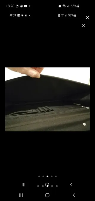 Elegante cartera negra de piel de anguila. Su diseño vertical y los múltiples compartimentos exteriores lo hacen muy práctico. - Material: Piel de anguila. - Color: Negro - Diseño vertical con bolsillos exteriores. - Cierres con cremalleras y botones imantados. - A estrenar - 42x28cms - Contiene banda para colgar al hombro