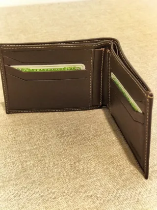 Elegante cartera de piel para hombre. Un accesorio clásico y funcional. - Material: Piel genuina. - Diseño bifold. - Compartimentos para tarjetas.