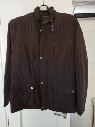 Chaquetón marrón en perfecto estado. Exterior: 2 bolsillos con cierre de corchetes y 2 bolsillos en la parte superior con cremallera. Interior: Acolchado con 1 bolsillo para cartera y 1 bolsillo porta teléfono.