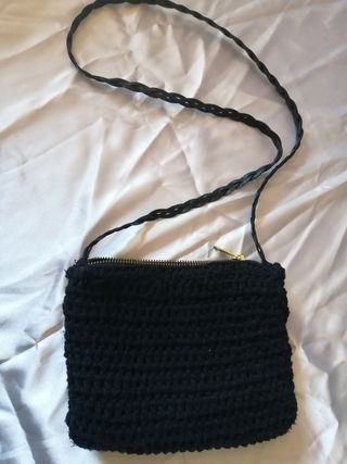 Bolso pequeño de ganchillo, con forro interior, perfecto para móvil y cartera, con correa trenzada polipiel, y cierre con cremallera. Medidas 20x17cm.