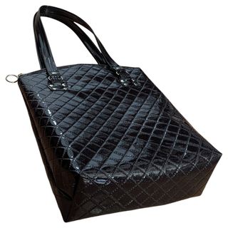 Cartera con diseño de Lady Gaga como vampiresa. De pu negro charolado, con brillos y símil matelaseado. Forro negro, bolsillo interno con cremallera. - Bolso de mano con asa de hombro. - Diseño acolchado con textura brillante. - Cierre de cremallera superior. - Decoración con encaje negro. Mira los otros productos de mi emprendimiento 🖤