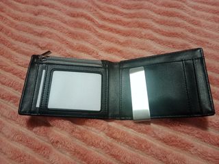 Elegante cartera de piel para hombre, con un diseño clásico y funcional. - Medidas 11 x 9 cm. - Compartimento para tarjetas. - Ventana transparente para identificación. - Bolsillo para monedas.
