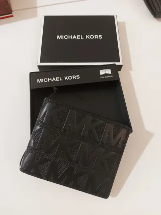 Elegante cartera Michael Kors para hombre. ORIGINAL - Diseño Slim Bifold. - Acabado con el logo MK en relieve.