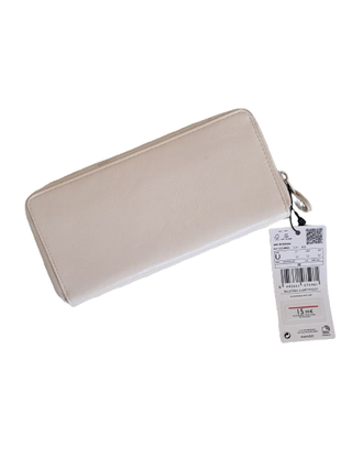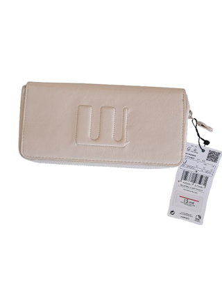 Elegante cartera de Mango en color beige, con un distintivo logo en relieve. - Diseño alargado y plano. - Cierre de cremallera. - Detalle de costuras. - Incluye etiqueta.