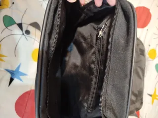 Cartera nueva para un ordenador portátil y documentos. Bolsillo exterior delantero y trasero, ambos con cremallera. 3 compartimentos centrales. Dos de ellos cerrados con cremallera. Con correa para el hombro. Tamaño: 38 cm largo x 30 cm ancho x 10 cm máximo de grueso. Color negro Con publicidad del Gobierno de Aragón en el bolsillo interior como se ve en la foto. Dispongo de 2 unidades Precio: 16 euros 1 unidad, 26 euros 2 unidades Entrega en mano Azucarera del Arrabal de Zaragoza o envío por wallapop