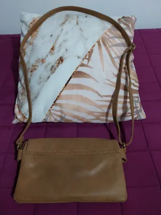 Bolso tipo cartera en un bonito color berengena (morado). Tiene una correa de mano para mayor comodidad, puede llevarse colgado o al hombro añadiendo una correa metálica o de otro tipo (no incluida), puesto que en los laterales tiene unos apliques para engancharla. Cierre de cremallera. El fondo se expande (tipo acordeón) si llenas un poquito más el bolso. Medidas de 20x30 cm, lo que lo hace muy funcional. Está muy bien conservado. - Material: Piel sintética de gran calidad - Cierre: Cremallera.