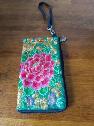 Bolso o neceser o cartera de mano bordado. Lleva cremallera. Interiormente lleva separación en el medio. Se puede utilizar como bolso de mano, neceser ó estuche de maquillaje. Usado una vez (prácticamente nuevo). Entregas en varias zonas: MÓSTOLES, Centro comercial XANADÚ (gasolinera REPSOL) y Parque del Oeste (ALCORCÓN). Envíos por Wallapop. Más artículos en mi perfil.