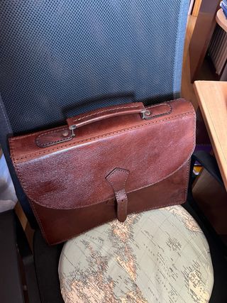 Elegante cartera o maletín de piel con un diseño clásico, atemporal y unisex. Perfecta para darle un toque sofisticado a tu estilo. Ideal para regalar a papás o mamás ejecutivos y otros. Entrego en mano y hago envíos por Wallapop. No contesto regateos, directamente bloqueo. Wallapop no deja publicar si no se pone "marca". He puesto una a boleo. - Fabricada en piel de alta calidad. - Combinación de colores negro y marrón. - Detalle de cierre metálico. - Departamento interior con cremallera - Asa superior de cuero.