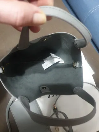 Bolso de mano con un diseño moderno y elegante. - Acabado en material suave. - Detalles de costura en contraste. - Asas de cuero. - Cremallera lateral decorativa. -Totalmente nuevo. -Con cartera-neceser con asa. -Correa para colgar si se quiere. -Se puede llevar al hombro,mano o colgando con la bandolera que trae.