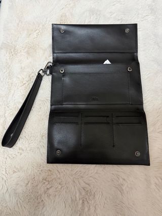 Elegante cartera de mano con correa. - Diseño moderno y minimalista. - Acabado liso y suave. - Incluye una práctica correa para llevarla cómodamente.