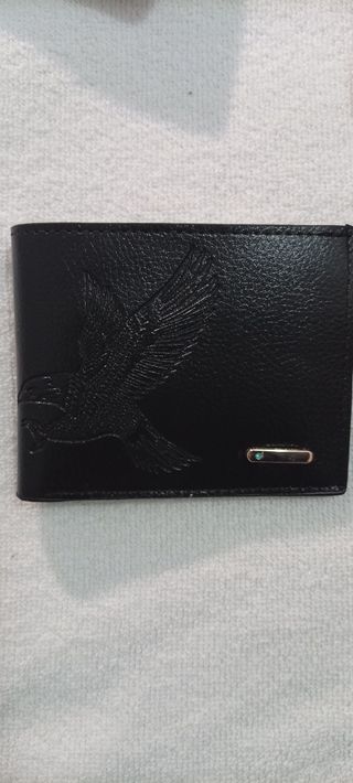 Pak de 6 unidades Elegante cartera billetera para hombre con un diseño distintivo. - Elaborada en material con textura. - Detalle de águila grabada en relieve. - Pequeño adorno metálico con piedra. Se entrega boca de metro Madrid trato en mano 🫱