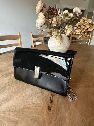 Bolso original de BOSS, en color negro brillante efecto charol, con un diseño elegante y atemporal que combina con cualquier outfit. Perfecto para eventos, cenas, fiestas o looks más formales. ✨ Detalles: • Marca: BOSS • Color: negro brillante • Cadena metálica para llevar al hombro o como bolso de mano • Cierre metálico elegante • Tamaño ideal para móvil, llaves, cartera y maquillaje 👌 Estado: muy buen estado, poco uso. Un bolso minimalista, sofisticado y de marca, perfecto para darle un toque de estilo a cualquier look. 📩 Si tienes alguna pregunta, ¡escríbeme sin problema!