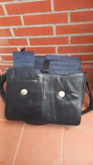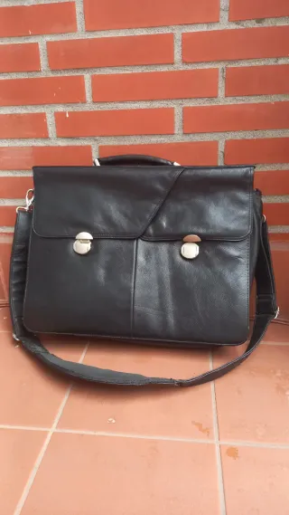 Elegante cartera tipo cartapacio fabricada en cuero. Marca Targus - Material: Cuero genuino. - Cierre con broches metálicos. - Asa de mano y correa ajustable para hombro.