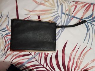 Está en muy buen estado. Carterita de color negro con adornos estampados Se puede llevar tanto como de cartera de mano como de bolsito. La correa se puede quitar y poner. Tiene también una cremallera dentro. Las dos funcionan perfectamente.
