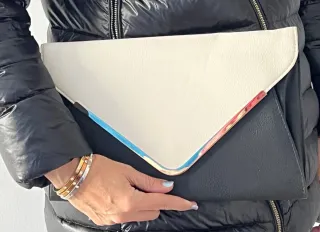 Medidas: 52×20×2cm Elegante bolso de mano con un diseño moderno. - Combinación de colores negro y blanco. - Detalle metálico en el cierre. REGALO: Otro bolso de mano