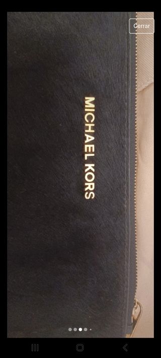 Bolso de mano negro de Michael kors, un solo uso. Es muy elegante y espaciosa!! Cartera con compartimento para smartphone • Piel • 100 % piel • Apliques dorados • 19,1 cm (anch.) x 12,1 cm (alt.) x 3,8 cm (prof.) • Detalles interiores: bolsillo para smartphone, ranuras para tarjetas • Forro de los bolsillos: 100 % poliéster • Cierre con cremallera • Producto importado Bolso de mano original de Michael Kors. Con cremallera y cadena para llevarlo sujeto, bosillo interior y bolsillo pequeños simulando un tarjetero. Envio con bolsa incluida
