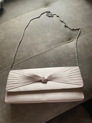 Elegante conjunto de guantes largos y cartera de mano para ocasiones especiales. - Guantes de tacto suave. - Cartera con adornos de pedrería y lentejuelas. los guantes son de piel natural ( ante) son muy elegantes y favorecen mucho.La cartera es el complemento ideal. Es blanda y se adapta a lo que metes. Se venden juntos.Los guantes a estrenar, la cartera está más usada.