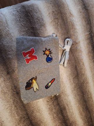 Preciosa cartera de mano, impecable. - Diseño elegante y compacto. - Cremallera doble para mayor seguridad. - 15 cm de largo - Asa de mano para un cómodo transporte. - Material de nylon resistente. Para llevar las tarjetas y el móvil