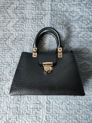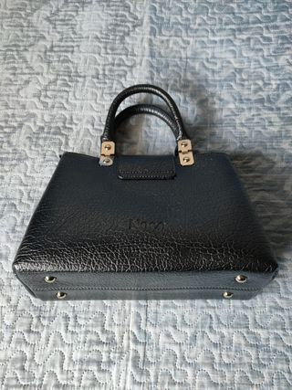 Elegante bolso de mano de la marca Noco. Tiene cierre de seguridad y está dividido en tres apartados principales, dos con broche imantado y el central con cremallera. El apartado central incluye subapartados en su interior para móvil, cartera, etc y otro bolsillo discreto con cremallera. *Nuevo, nunca se ha usado.