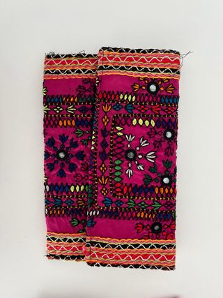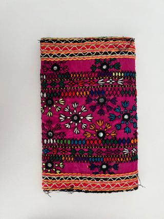 Se vende bolso cartera de mano,con accesorio para colgar,en color burdeos y flores bordadas Mide 22cm × 12cm