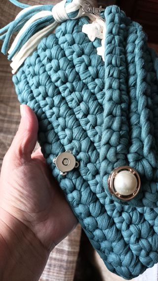En color fucsia preciosa cartera con hilos brillantes, se puede llevar de mano o colgada. Mide 15x17cm. Para estas fiestas navideñas o como un bonito regalo por poco dinero. La aplicación me pone la marca, pero esto no es asi