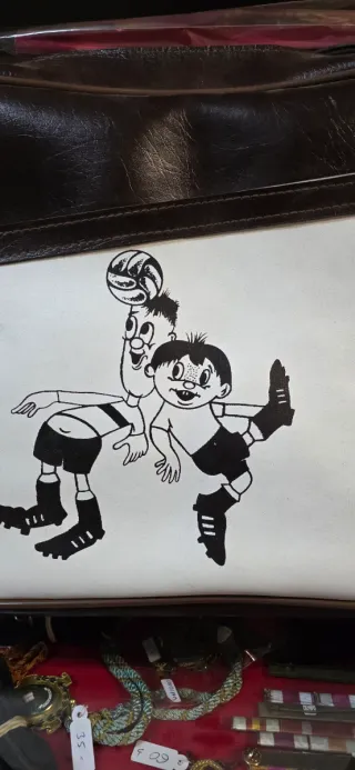 Maleta escolar años 70 Es nueva sin uso de una antigua jugueteria Los papeles que lleva dentro es del año 74 Mochila escolar Maleta escolar Cartera - Material sintético con acabado imitación piel. - Combinación de colores marrón y blanco. - Cierre de cremallera. NO ENVIAMOS SOLO RECOGIDA EN MANO ERAMOS LA MAQUINA DEL TIEMPO (CALLE AVILA )