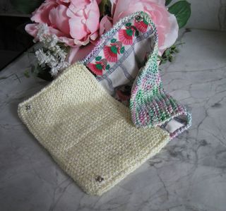Cartera de mano tejido a crochet, con un diseño único y moderno. - Elaborado con hilo de alta calidad. - Detalle de dos placas metálicas doradas. - Una placa con la palabra handmade y otra con AliCodi.