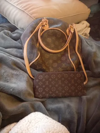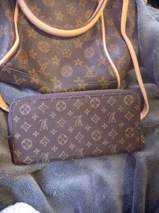 Conjunto de bolso y cartera con el icónico estampado. - Bolso de mano con asas. - Cartera a juego.