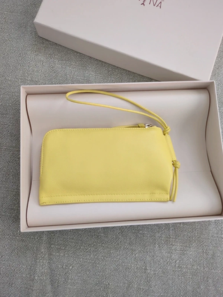 Elegante cartera de mano con un vibrante color limón. Perfecta para llevar tus esenciales con estilo. - Diseño minimalista. - Cierre de cremallera. - Incluye asa de mano.