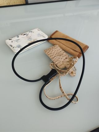Lote de dos carteras y una funda para móvil. Incluye una lupa de regalo. Medidas de las carteras: 22x11cm. - Una cartera blanca con estampado floral. - Una cartera marrón. - Una funda para móvil con textura. - Lupa de regalo. Entrega en mano o por envío. Más productos en mi perfil. 251227