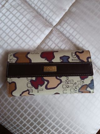 Elegante cartera de la marca Tous con un diseño llamativo. - Estampado con el logo de la marca. - Detalle de banda en color marrón. - Acabado en piel sintética.