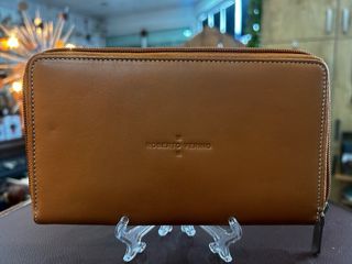 Cartera de piel auténtica de la marca Roberto Verino, en perfecto estado. Tiene un diseño elegante y muy práctico, con materiales de gran calidad. Piel suave y resistente, con acabado en tonos marrones y costuras cuidadas. • Cierre completo con cremallera para mayor seguridad. • Interior amplio y organizado:• Múltiples ranuras para tarjetas • Bolsillo con cremallera para monedas • Compartimentos para billetes y documentos