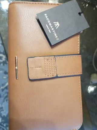 Con varios departamentos para guardar tarjetas, billetes, monedas y documentación. Nuevo, no se ha usado nunca. Medidas (cerrada): 19cm x 9,5cm