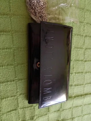 Bolso de mano tipo cartera, con cadena y compartimento para móvil. 20×13. Nuevo.