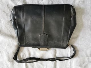 Elegante cartera de cuero para documentos. Ideal para llevar tus cosas importantes con estilo. Medidas 43x32x14 cms 4 espacios interiores - Confeccionada en cuero marrón de textura atractiva. - Cierre con broche metálico. - Correa para llevarla al hombro.
