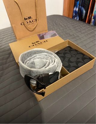 Set de cinturón y cartera de la marca Coach. Envío rápido y seguro, se escuchan ofertas también por separado. - Cinturón con hebilla en forma de C. - Cartera con el monograma de la marca.