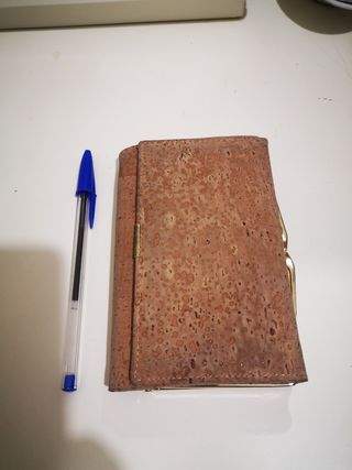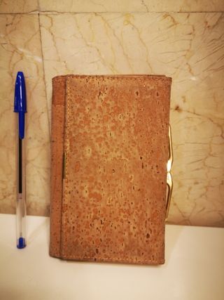 Cartera corcho. Muy poco usada. En bordes, el tono corcho un poquito grisáceo. Bien conservada. 5€/HAGO ENVÍOS Medidas: 14 x 9 cm.