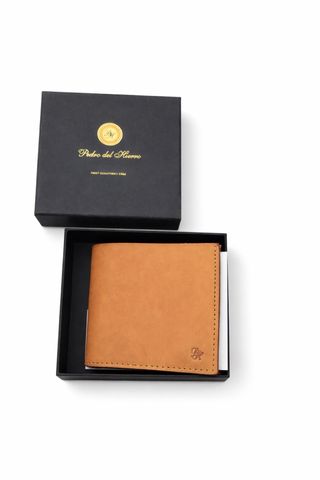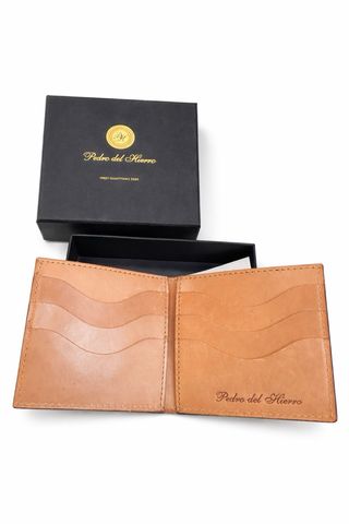 Cartera de cuero de la marca Pedro del Hierro, presentada en su caja original. - Diseño elegante y atemporal. - Acabado en cuero de alta calidad. - Logo de la marca grabado.