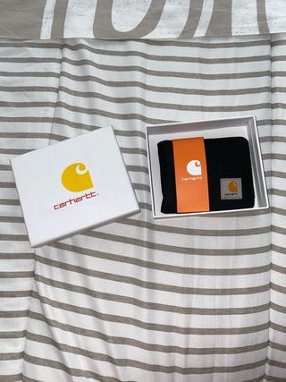Cartera Carhartt unisex en color negro con detalles en naranja. - Con caja: 20€ - Sin caja: 17€ - Diseño clásico y funcional. - Logo de la marca visible. #new #carhartt #unisex #black