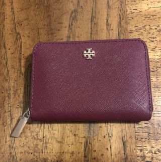 Elegante cartera de Tory Burch en color morado. Como nueva - Diseño compacto con cremallera. - Detalle del logo de la marca en dorado.
