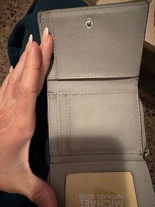 Elegante cartera de la marca Michael Kors. - Color marrón con detalles dorados. - Diseño moderno y funcional.