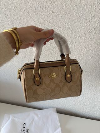 Set de bolso y cartera a juego de la marca Coach. - Bolso con monograma. - Cartera a juego con monograma.