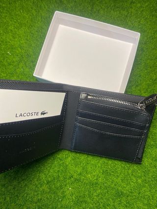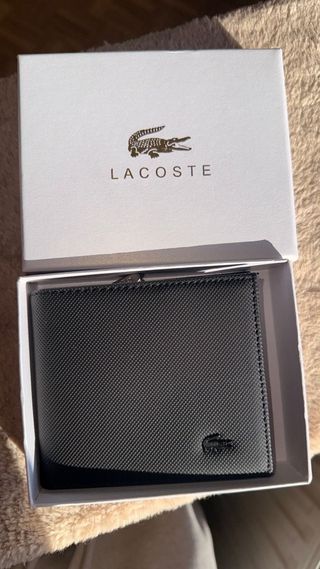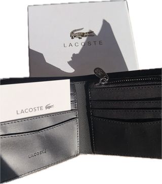 Elegante cartera de la marca Lacoste en color negro. Presentada en su caja original. - Diseño clásico y funcional. - Acabado texturizado.